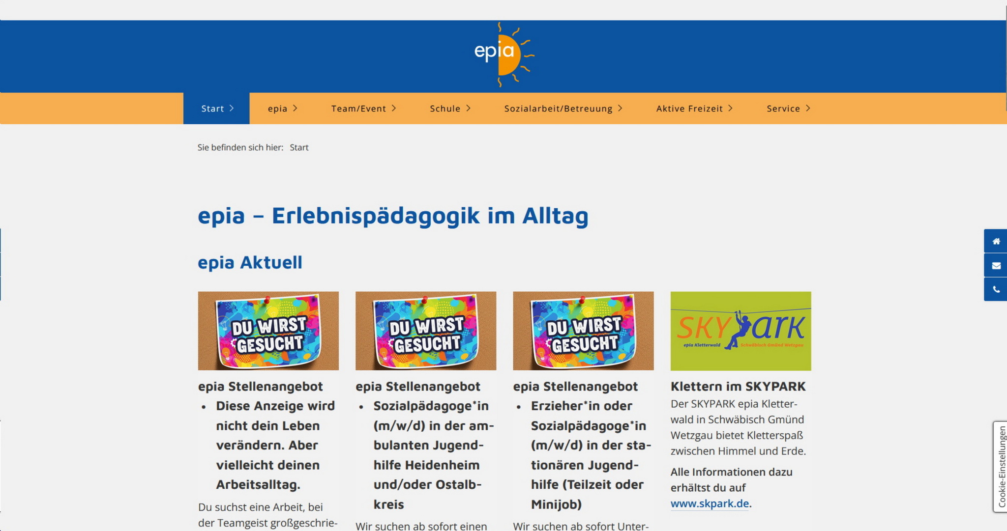 Dies ist die Startseite von epia - Erlebnispädagogik im Alltag.